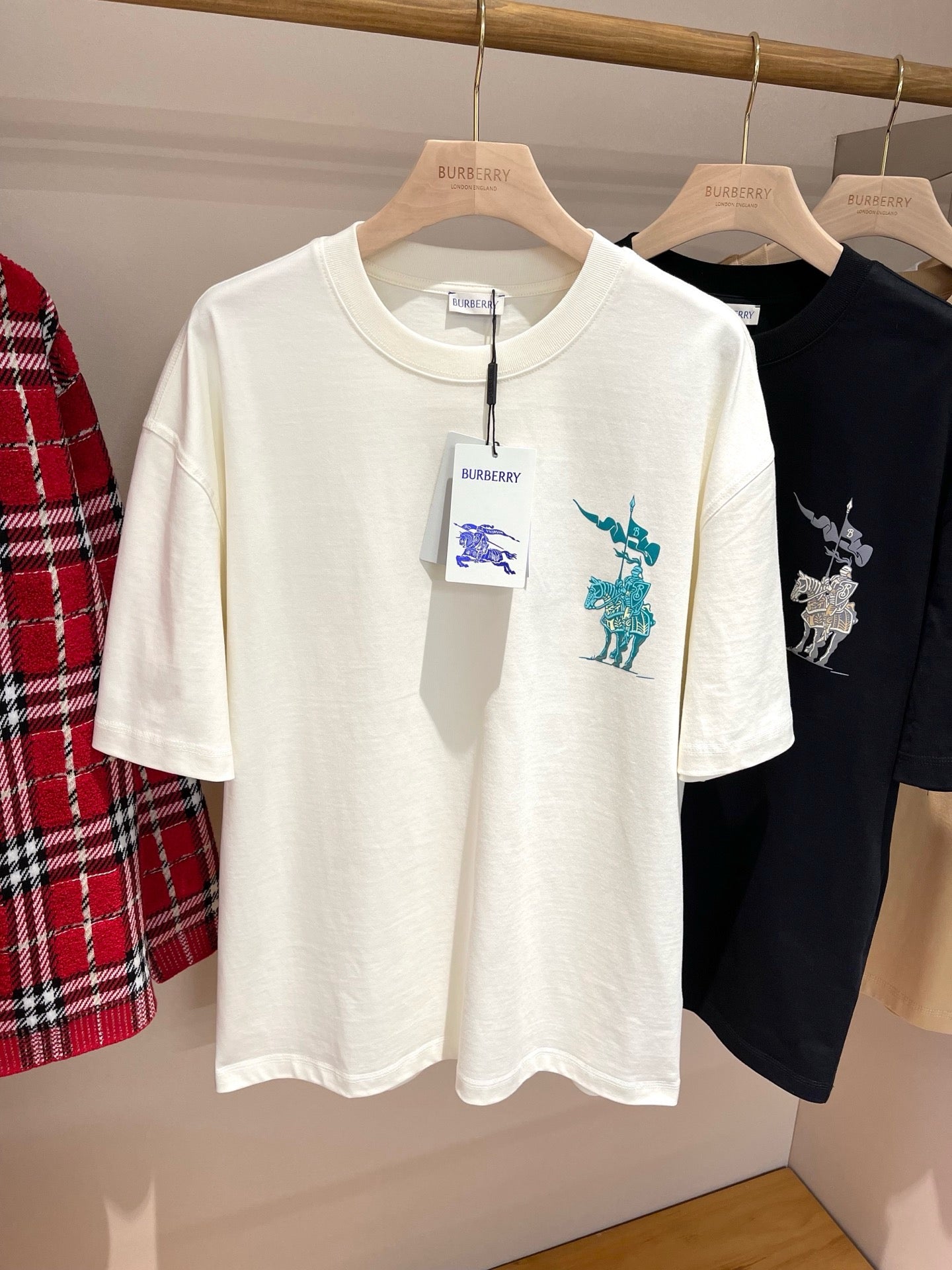 Bringen Sie Ihren einzigartigen Stil mit unserem Multi-Colors T-Shirt von Burberry zum Ausdruck! Heben Sie sich mit diesem farbenfrohen und verspielten Shirt von der Masse ab – perfekt für jeden lässigen Anlass. Verleihen Sie Ihrer Garderobe einen Hauch von Individualität und zeigen Sie Ihre Individualität. (Nur 49 Wörter – Punkt!)