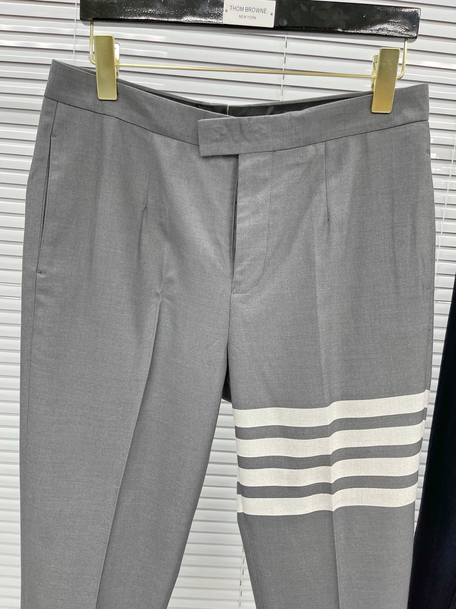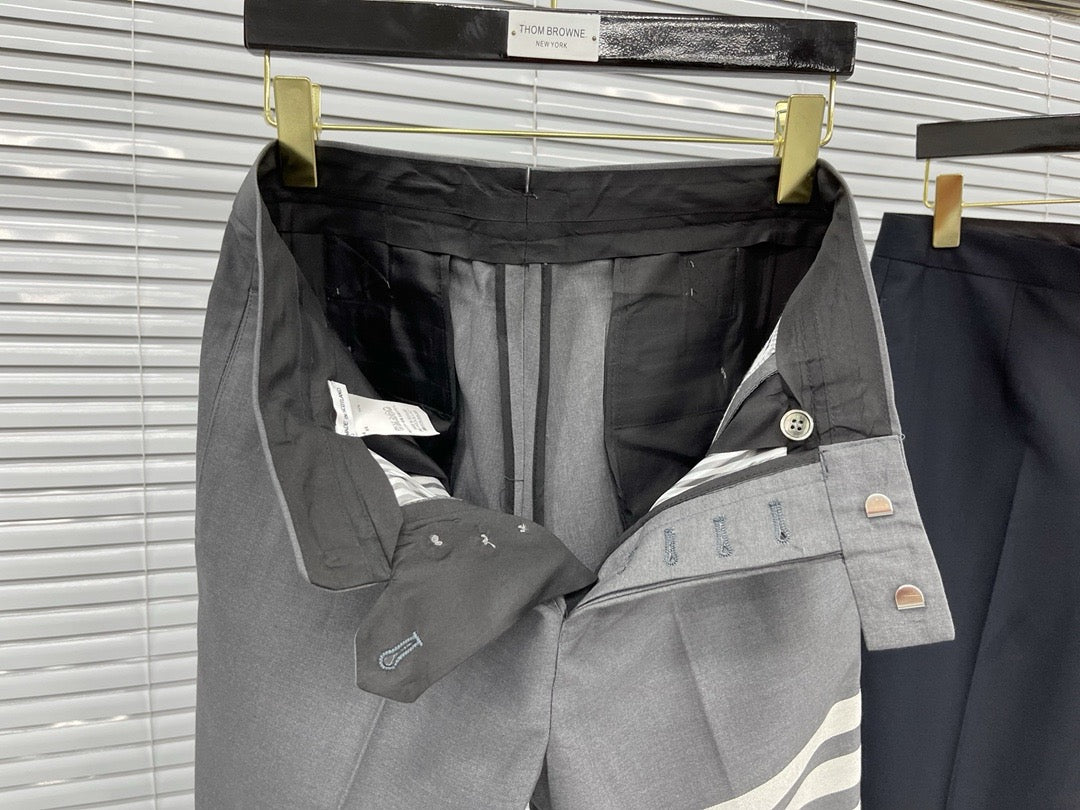 Präsentieren Sie sich in dieser eleganten schwarz-grauen Hose von Thom Browne! Perfekt für den Mix aus Business und Freizeit: Diese zweifarbige Hose verleiht Ihnen einen schicken Look und sorgt gleichzeitig für Abwechslung. Schlüpfen Sie in diese coolen Jungs und lassen Sie sich von den vielen Blicken der anderen verführen – denn warum sollten Ihre Hosen langweilig sein, wenn Sie der Mittelpunkt der Party sein können?