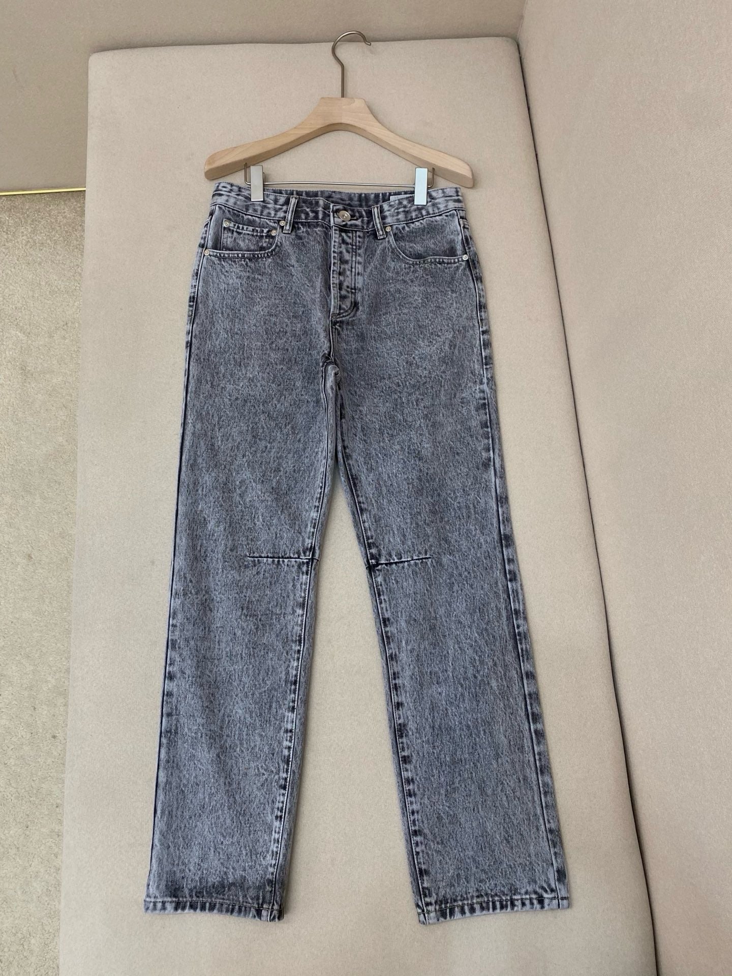 - Feature: Slim through hip with straight leg opening