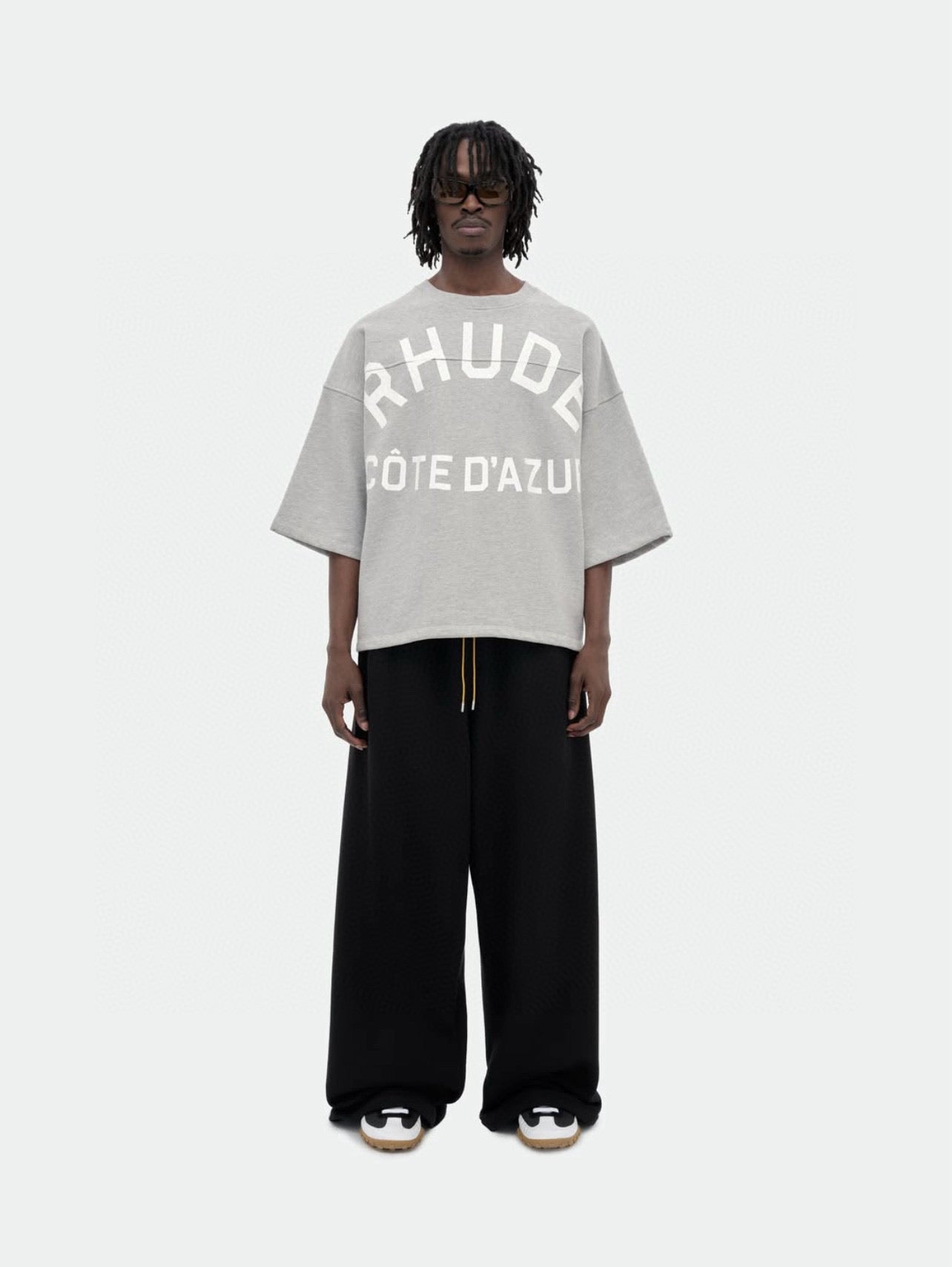Upgrade your t-shirt game with this Rhude Grey T-Shirt. Stand out from the basic grey t-shirts with this unique item, perfect for adding a touch of style and personality to your wardrobe. Made for those who march to the beat of their own drum.