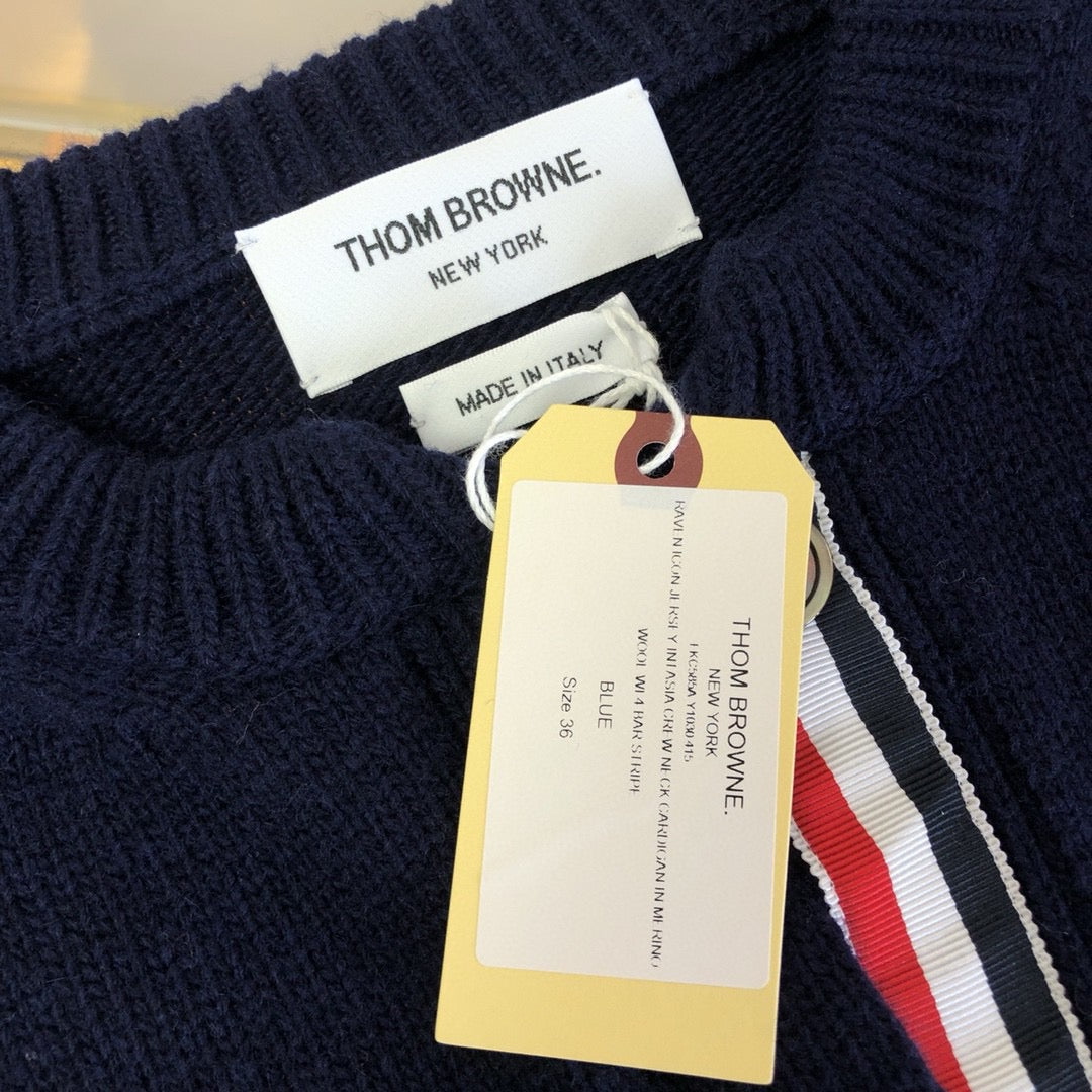 This Thom Browne Dark Blue Jacket is expertly crafted with a stylish design. The dark blue color adds a touch of sophistication, while the jacket's quality material provides both warmth and durability. Perfect for any occasion, this jacket is a must-have for any fashion-forward individual.