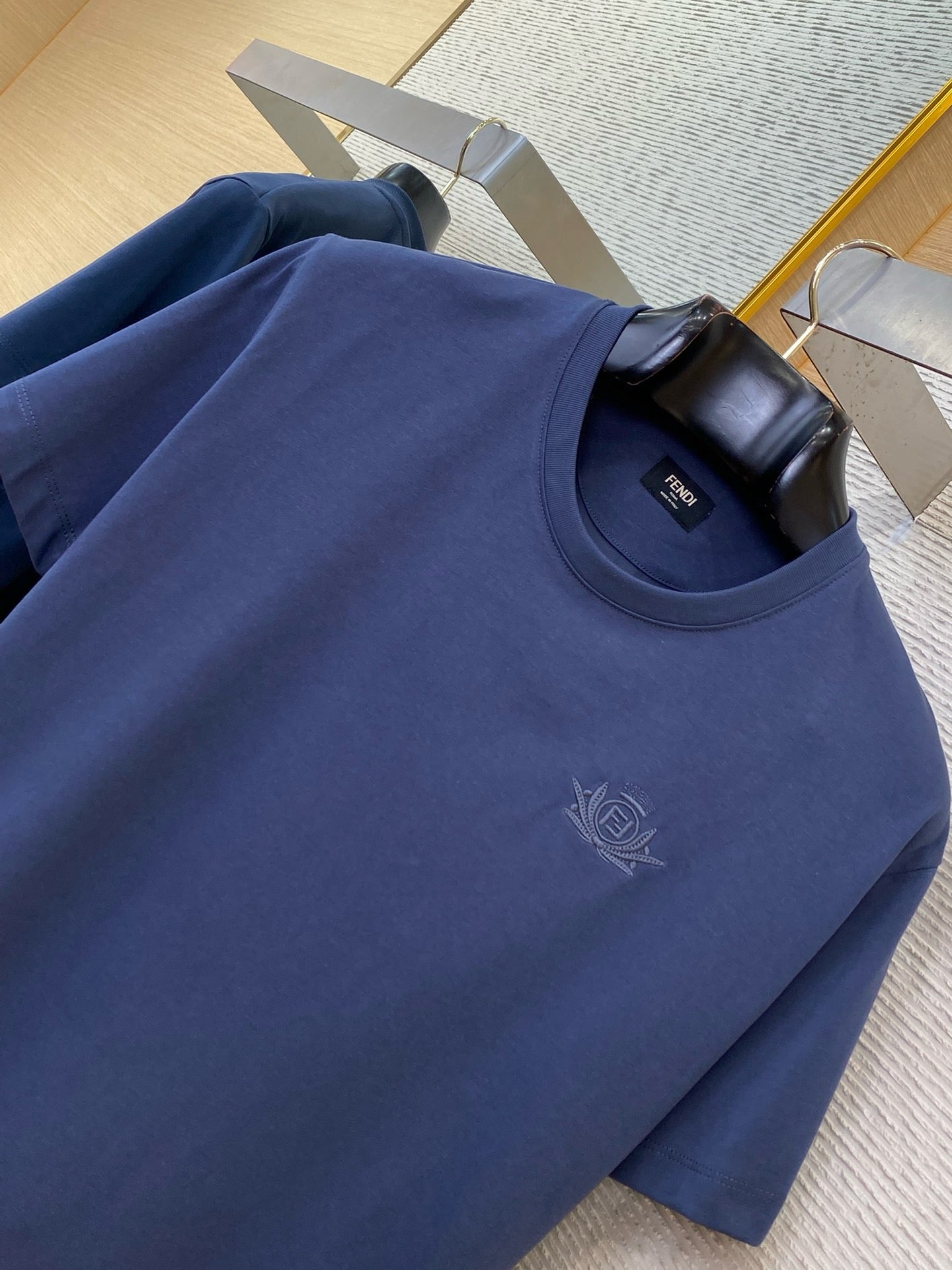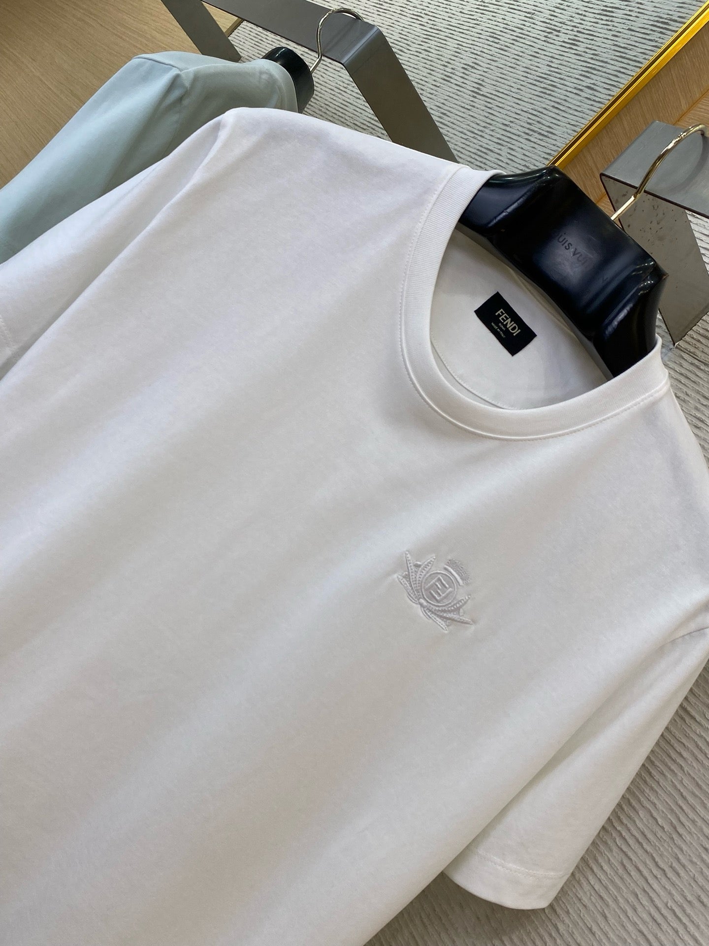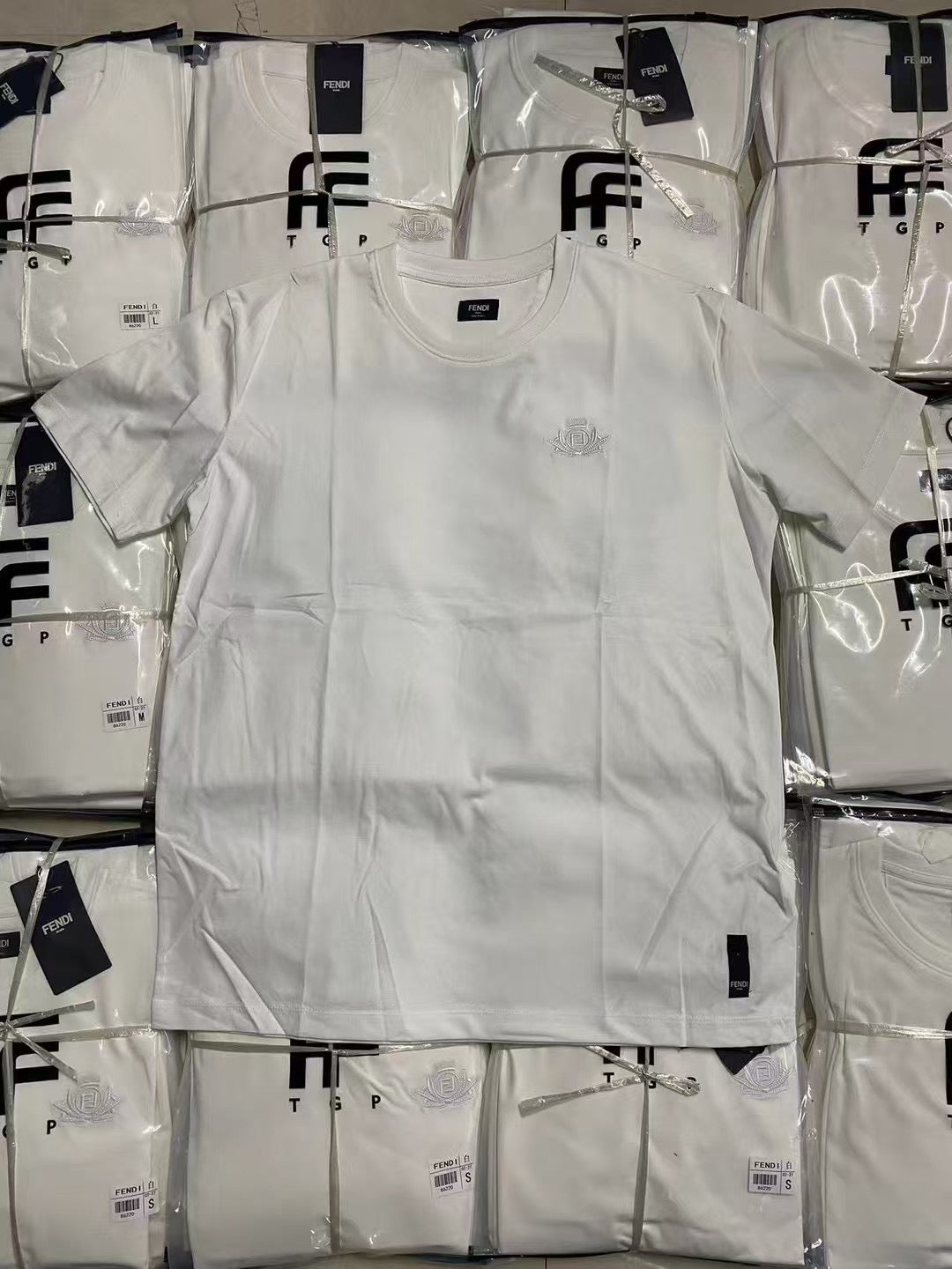 Unleash your playful side with this Fendi Blue and White T-Shirt. Made with the perfect blend of comfort and style, this t-shirt is perfect for any casual occasion. Stand out from the crowd and make a statement with this unique and stylish piece. (Pun-tastic!)