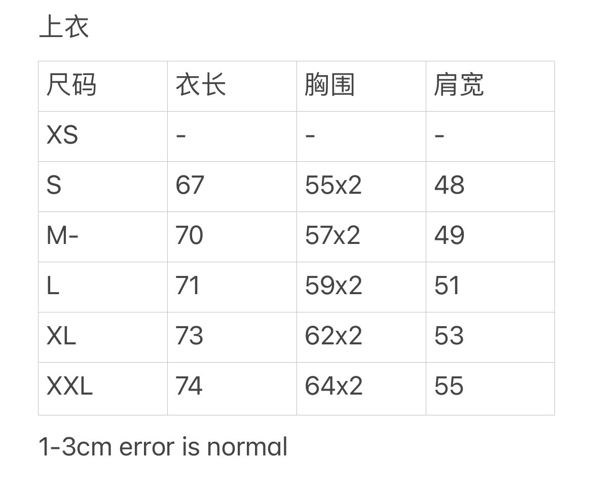 Chest width = 胸围