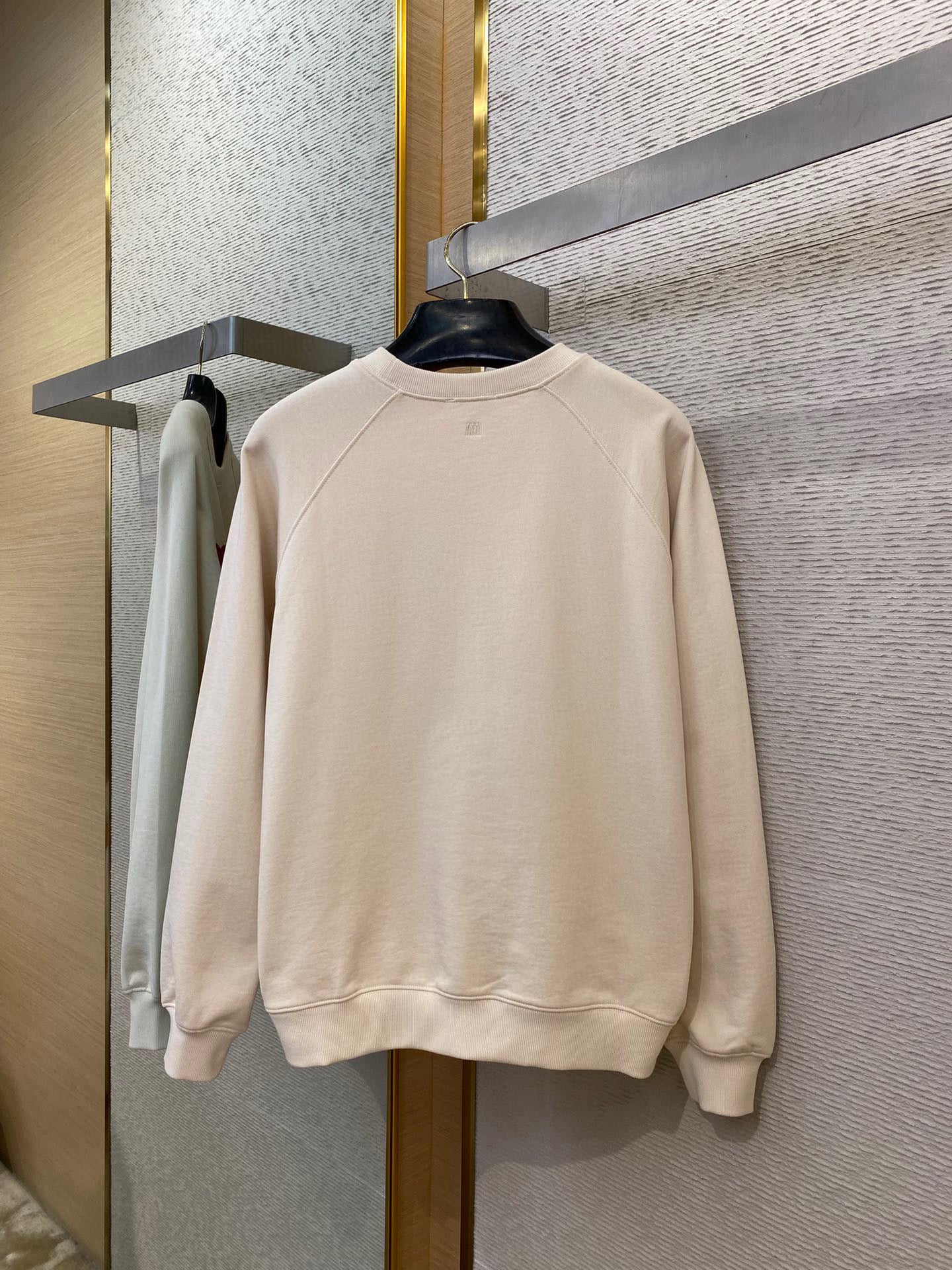 This jersey in a neutral beige color from Ami adds a touch of fun to any outfit. Made with high-quality materials, this jersey offers both comfort and style. Perfect for those who don't take themselves too seriously, this jersey is a must-have for any quirky and playful wardrobe.