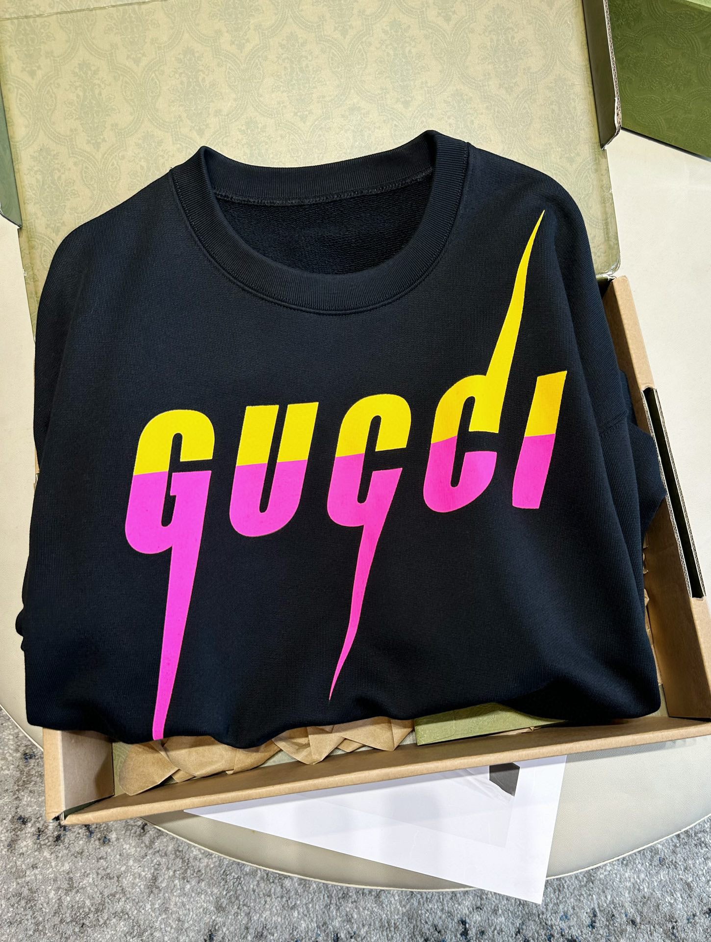 Upgrade your wardrobe with this Gucci Black Jersey. Made with the finest materials, this jersey is perfect for adding an edge to any outfit. Whether you're going to a concert or a night out, this jersey will make you stand out in style. Rock on!